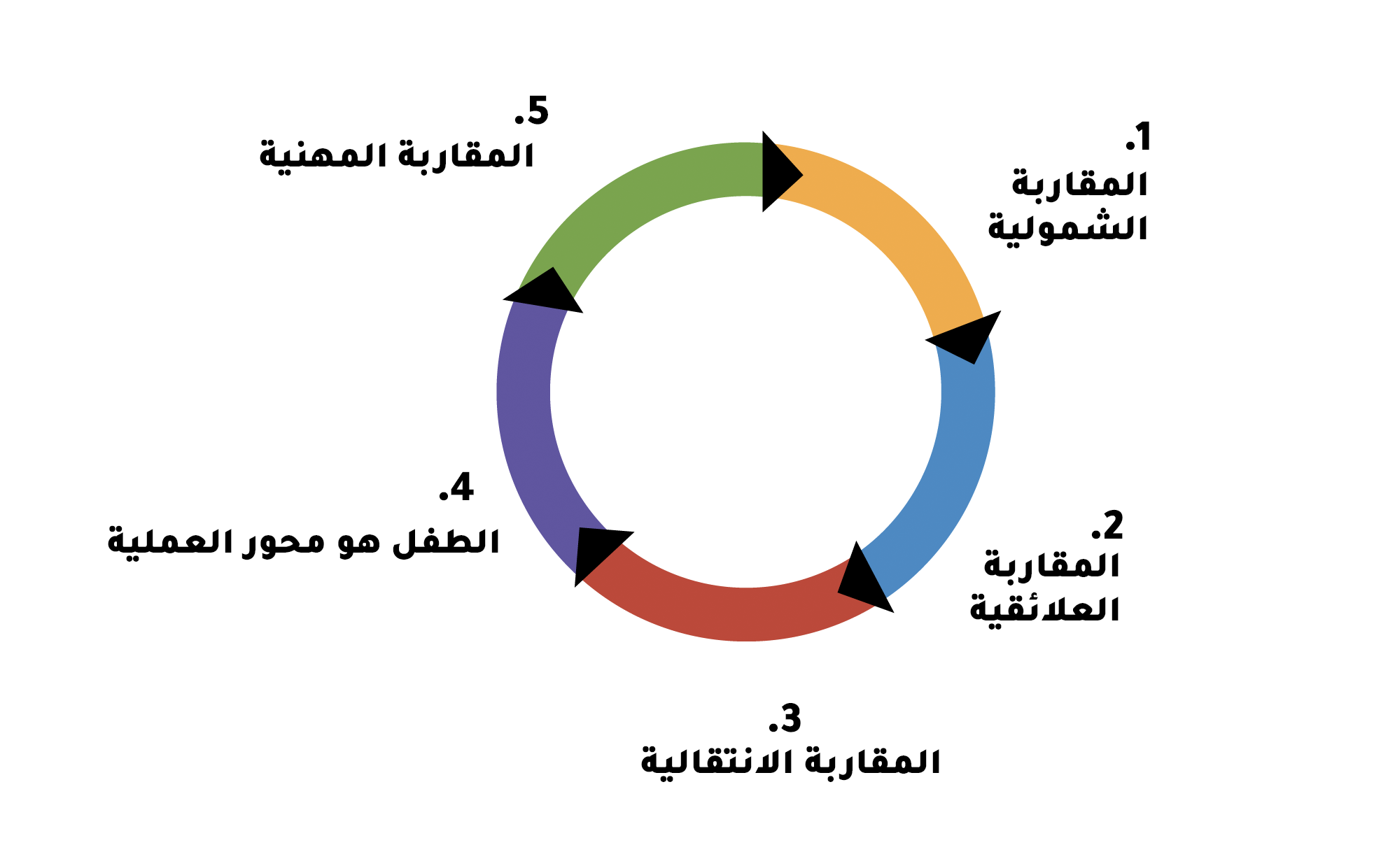 إن تبني نھج یتمحور حول الطفل ویركز على الأسرة مھم لیس فقط من حیث تعزیز تحقیق نتائج إيجابية، ولكنمن شأنه أیضا الزیادة من حظوظ فعالية إشراك الأطفال وأسرهم. وهذه المقاربة تتمحور حول الطفل وتركز على أسرته بشكل لا یستبعد أي منھما الآخر. فبینما یحیل “التمحور حول الطفل” إلى وضع احتیاجات الطفل في صمیم أي قرار، فإن التركیز على أسرته “یعترف بأن قضایا واحتیاجات الأبوين لھا أثر كبیر على الطفل.